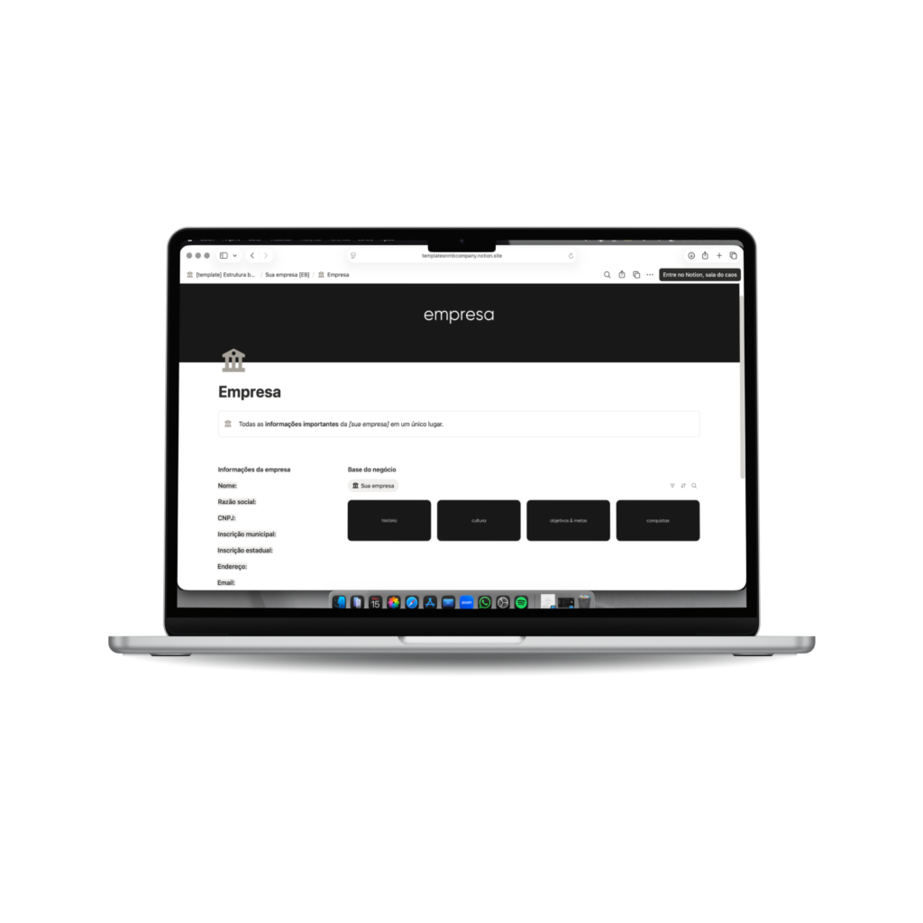 Mesmo que seja sua primeira vez usando a ferramenta, você conseguirá navegar e adaptar a estrutura para sua empresa.